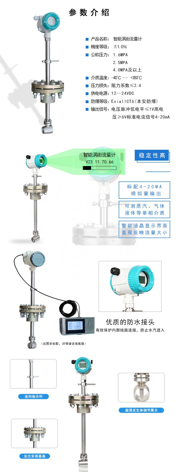 插入式渦街流量計采用壓電應(yīng)力式傳感器可靠性高可在-20℃~+350℃的工作溫度范圍內(nèi)工作。